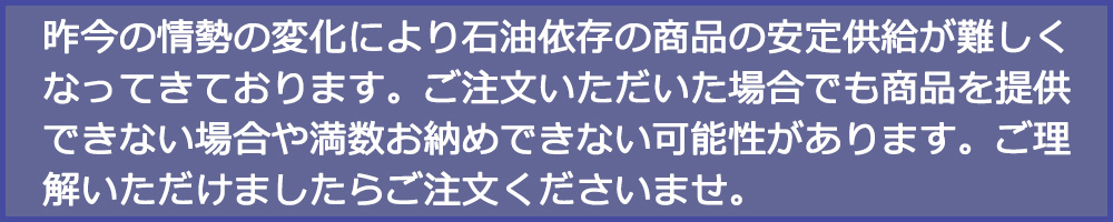 弊社のお客様は、会社様や個人事業主様が非常に多いため、お買い上げに伴い納品書、領収書(銀行振込を除く)以外に必要書類がある場合には都度対応しております。お見積書や、請求書が必要な場合はお気軽にお申し付けください。なお、弊社発行の領収書には、クレジットカード払いなどの決済方法は明記しておりません、領収書に決済方法の明記をご希望の場合、その他、記載方法などご希望がございましたらお申し付けくださいませ(ただし、法律に違反するような表記はできません)。 包装・梱包資材からパレットカバーなどの物流資材、半自動梱包機、アルミローラーコンベア等の物流機器、ホットメルトグルー接着剤や、道路、駐車場、構内の標示や線引に使うキクラインテープ、安全喚起用の反射テープなどを取り扱い。ストレッチフィルム、PPバンド等の需要家様セットは送料が無料と大変お得。特注品もご相談ください。 技術的な内容のご質問は03-5767-0101(平日9:00~17:00)へお願いいたします。技術担当者の携帯電話に自動的に転送されます。ご注意→最近弊社のホームページの画像・商品説明をそのまま無断転載しているものが確認されています。商品に関する十分な知識・ノウハウ無く販売しているものがほとんどですので、ご注意くださいますよう、お願い申し上げます。 おすすめ商品 SHOWA No.310 グリップ ソフトタイプ(ショーワグローブ)10双セット ¥3,980(税込) 業務用 現場用 超速乾高強度モルタル GENBA GT 18kgペール缶入り グレーまたは黒 ¥27,500(税込) 業務用 現場用 超速乾高強度モルタル GENBA GT 2kg×6袋入 グレーまたは黒 ¥16,500(税込) 業務用 現場用 超速乾高強度モルタル GENBA GT 4kg×4袋入 グレーまたは黒 ¥18,700(税込) 業務用 現場用 超速乾高強度モルタル GENBA GT 600g はちみつボトル入り×10本/箱 グレーまたは黒 ¥18,000(税込) 寺岡製作所 P-カットテープ 4140 カラー 色物 ¥9,900(税込) ~ 寺岡製作所 P-カットテープ 4150 透明(50mm×25m)1ケース 30巻入り ¥13,500(税込) 寺岡製作所 パックテープ 451-60 カラー(75mm×50m)(1ケース=40巻入り) ¥42,053(税込) 寺岡製作所 パックテープ 451-60 カラー(60mm×50m)(1ケース=50巻入り) ¥42,053(税込) 寺岡製作所 パックテープ 451-60 カラー(50mm×50m)(1ケース=60巻入り) ¥42,053(税込) 寺岡製作所 パックテープ 451-60 カラー(38mm×50m)(1ケース=80巻入り) ¥42,377(税込) 寺岡製作所 パックテープ 451-60 カラー(25mm×50m)(1ケース=120巻入り) ¥41,853(税込) 寺岡製作所 パックテープ 451-60 透明・クリーム(75mm×50m)(1ケース=40巻入り) ¥40,368(税込) 寺岡製作所 パックテープ 451-60 透明・クリーム(60mm×50m)(1ケース=50巻入り) ¥40,368(税込) 寺岡製作所 パックテープ 451-60 透明・クリーム(50mm×50m)(1ケース=30巻入り) ¥21,434(税込) 寺岡製作所 パックテープ 451-60 透明・クリーム(38mm×50m)(1ケース=80巻入り) ¥40,872(税込) 寺岡製作所 パックテープ 451-60 透明・クリーム(25mm×50m)(1ケース=120巻入り) ¥40,368(税込) 寺岡製作所 パックテープ 451-40 カラー(75mm×50m)(1ケース=40巻入り) ¥41,110(税込) 寺岡製作所 パックテープ 451-40 カラー(60mm×50m)(1ケース=50巻入り) ¥41,110(税込) 寺岡製作所 パックテープ 451-40 カラー(50mm×50m)(1ケース=60巻入り) ¥41,110(税込) 寺岡製作所 パックテープ 451-40 カラー(38mm×50m)(1ケース=80巻入り) ¥41,625(税込) 寺岡製作所 パックテープ 451-40 カラー(25mm×50m)(1ケース=120巻入り) ¥41,110(税込) 寺岡製作所 パックテープ 451-40 透明・クリーム(75mm×50m)(1ケース=40巻入り) ¥39,625(税込) 寺岡製作所 パックテープ 451-40 透明・クリーム(60mm×50m)(1ケース=50巻入り) ¥39,625(税込) 寺岡製作所 パックテープ 451-40 透明・クリーム(50mm×50m)(1ケース=30巻入り) ¥21,063(税込) 寺岡製作所 パックテープ 451-40 透明・クリーム(38mm×50m)(1ケース=80巻入り) ¥40,120(税込) 寺岡製作所 パックテープ 451-40 透明・クリーム(25mm×50m)(1ケース=120巻入り) ¥39,625(税込) 寺岡製作所 布両面テープ711(50mm×25m)(20巻) ¥25,080(税込) 寺岡製作所 ライトオリーブテープ NO.150(100mm×25m)1ケース(18巻)布粘着テープ ¥21,600(税込) 寺岡製作所 ライトオリーブテープ NO.150(75mm×25m)1ケース(24巻)布粘着テープ ¥21,600(税込) 寺岡製作所 ライトオリーブテープ NO.150(50mm×25m)1ケース(30巻)布粘着テープ ¥18,000(税込) ニチバン せこたんコンクリート用湿潤粘着テープ WCT-50(50mm×10m)(30巻セット) ¥47,550(税込) ニチバン せこたんコンクリート用湿潤粘着テープ WCT-50(50mm×10m)(3巻セット) ¥7,700(税込) KAETSU(カエツ)ホットメルト グルーガン専用スタンド ¥11,000(税込) KAETSU(カエツ)ホットメルトグルーガン G-390(グルースティック用グルーガン80W) ¥9,900(税込) HIROYUKI 天然ゴム系 OPPテープ GP-650(50mm×100m)透明(1ケース:50巻入り) ¥18,150(税込) 加越 KAETSU ホットメルト ミニグルーガン AC-280N-1.5mm(グルースティック用グルーガン10W) ¥3,800(税込) 加越 KAETSU ホットメルト ミニグルーガン AC-280 スタンダード(グルースティック用グルーガン10W) ¥2,980(税込) 新着商品 業務用 現場用 超速乾高強度モルタル GENBA GT 18kgペール缶入り グレーまたは黒 ¥27,500(税込) 業務用 現場